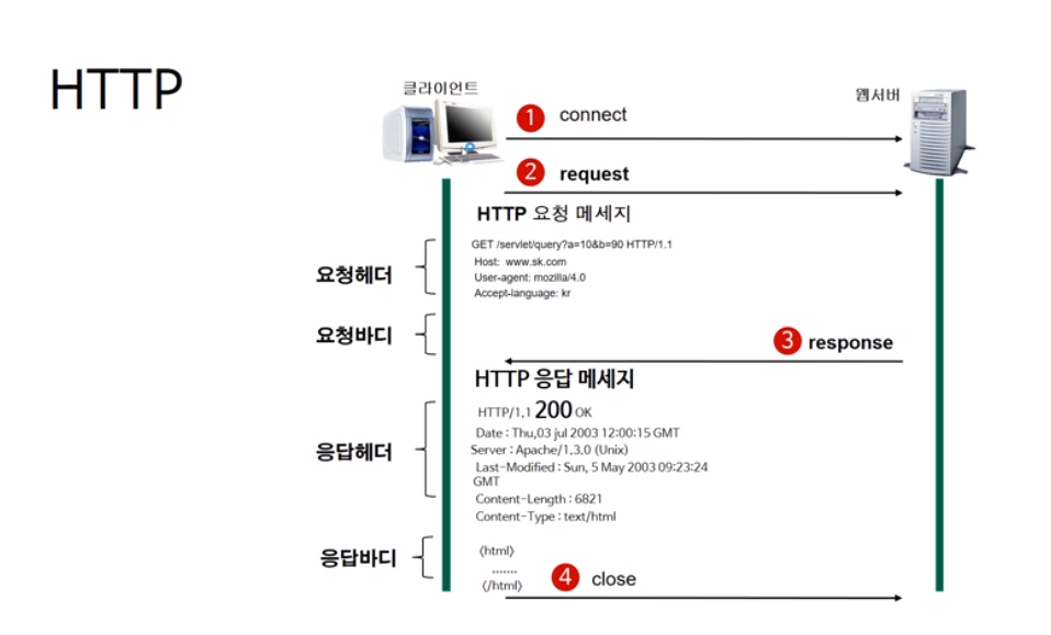 웹에서 브라우저(클라이언트)와 웹서버의 통신을 위해 사용하는 프로토콜