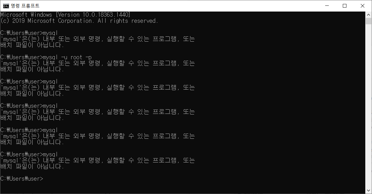 [mysql] windows 'mysql'은(는) 내부 또는 외부 명령, 실행할 수 있는 프로그램, 또는 배치 파일이 아닙니다. / mysql 환경 변수 설정하기